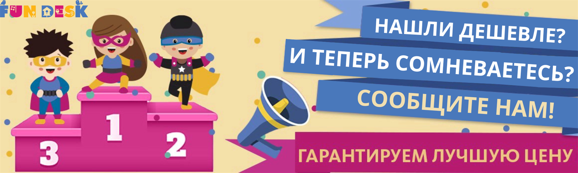 Присоединяйтесь к семье FunDesk в соц. сетях fundesk.official.russia, где Вы сможете найти не только интереснейшее посты, свежие истории на детскую тему, но и дополнительные акции и подарки.