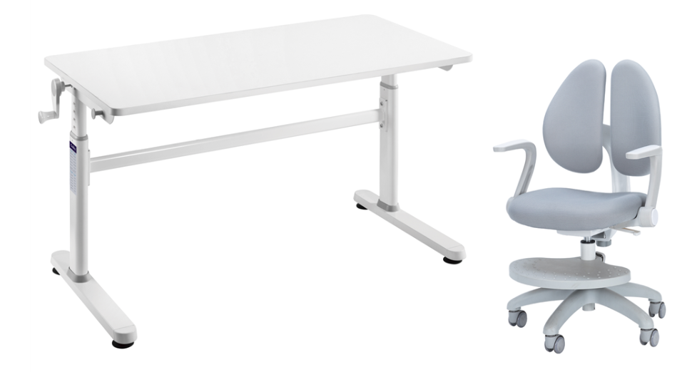Комплект парта Imparare Grey + кресло Primo Grey с подлокотниками и подставкой для ногя