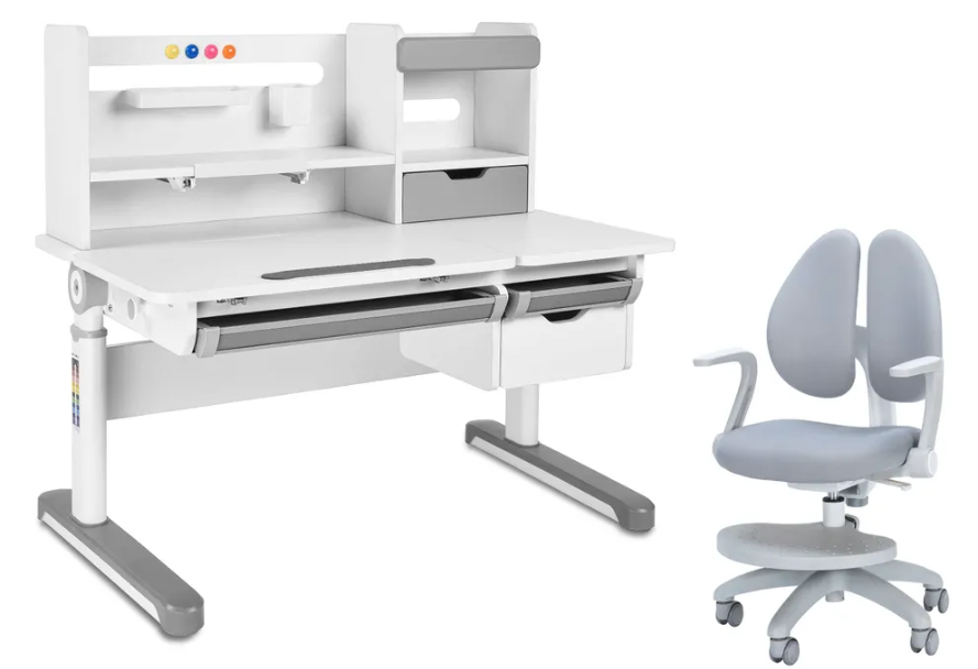 Комплект парта Sentire Grey + кресло Primo Grey с подлокотниками и подставкой