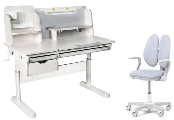 Комплект парта Ammi Grey + кресло Mente Grey с подлокотниками и подставкой - копия