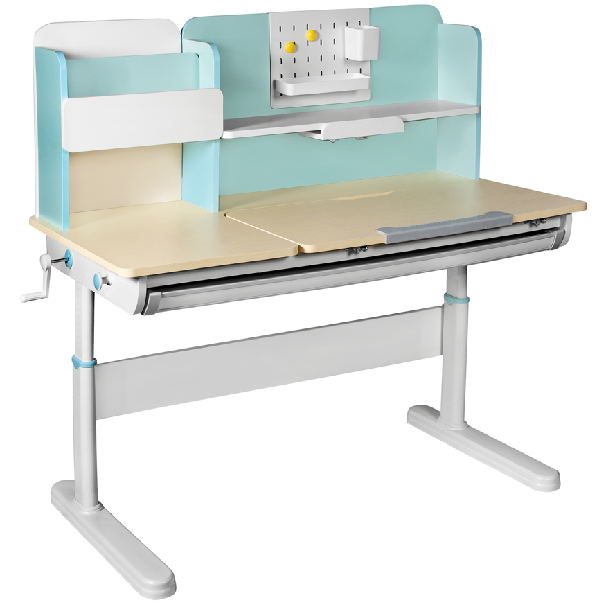 Особенностью парты является регулировка высоты от 550 до 760 мм. Это позволяет адаптировать парту под рост ребенка от 100 до 170 см. Регулировка высоты осуществляется вручную при помощи рукоятки, что делает процесс простым и удобным.
