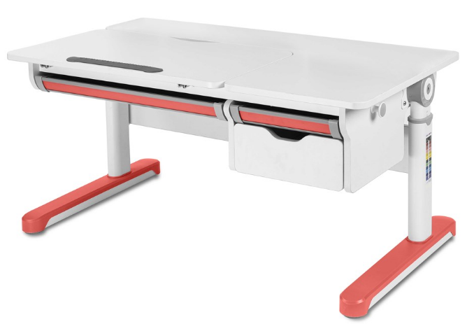 С помощью съемного рычага можно быстро и просто отрегулировать парту по высоте. Также в комплекте поставки присутствует специальная наклейка от производителя с подробной таблицей соотношения роста ребенка, и подходящей для него высоты столешницы.